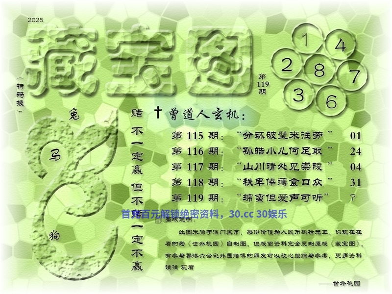 123期藏寶圖新:得君海错俱奇绝 老:极目双峰剑倚天 禁:龙 禁:6尾 玄機字:《旄》